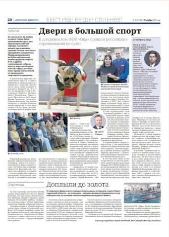 ОбъявленияОбъявляется набор групп на отделение борьбыОбъявляется набор мальчиков и девочек на отделение борьбы по следющим видам спорта : Дзюдо - с 7 лет, Сумо - с 10 лет, Самбо - с 7 лет, Спортивная борьба с 7 лет. Запись проводится по телефону 39-15-26 18-08-2023НовостиМежрегиональный турнир по дзюдо 24-11-2025![]() О нас в газете «Дзержинские Ведомости» 24-11-2025![]() Торжественное вручение удостоверений и значков \"Мастер спорта России\" 22-11-2025![]() |