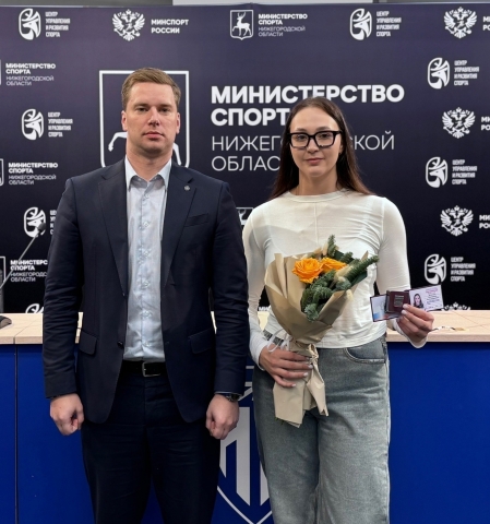 Удостоверение <<Мастера спорта России международного класса>> Екатерине вручил министр спорта Нижегородской области Дмитрий Сергеевич Кабайло.